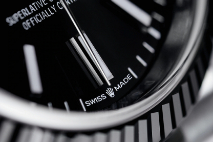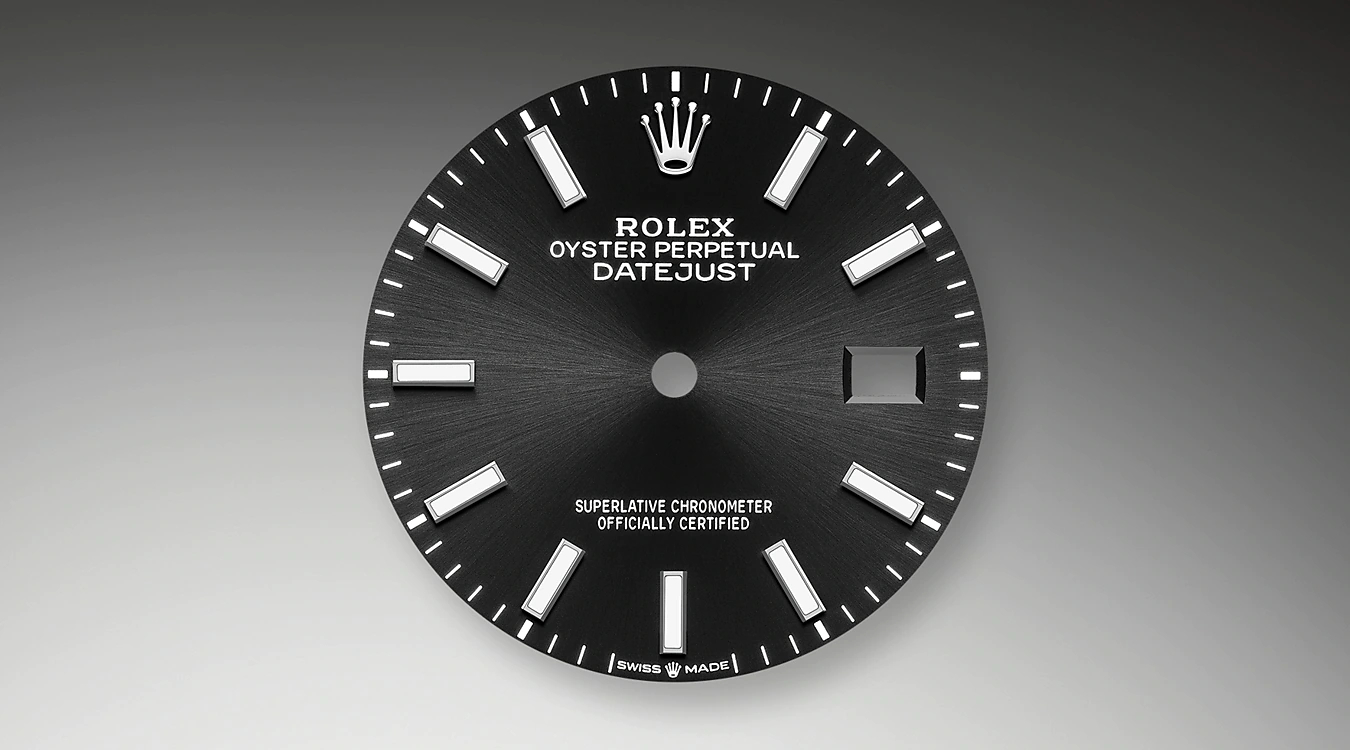 サンレイ仕上げは オイスター パーペチュアルコレクションの多くのダイアルに繊細な光の反射をもたらす。これはダイアルの中心から外側に向かって溝を作る 熟練のブラッシング技術によるものだ。光はそれぞれの彫りに沿って均一に拡散され 手首の位置に応じてわずかに動く 特徴的な輝きを生み出す。
