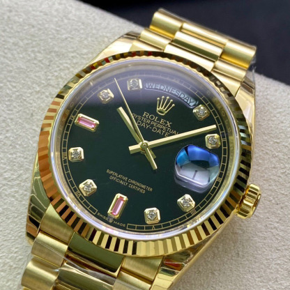 型番:118238Aムーブメント:自動巻き宝石:ダイヤモンドルビーバンドタイプ:ブレス材質(メイン):イエローゴールドケースサイズ:36.0mm機能:デイデイト表示防水性能(公称):100mカラー:ブラック