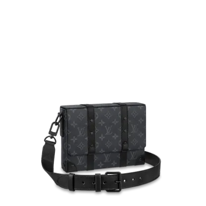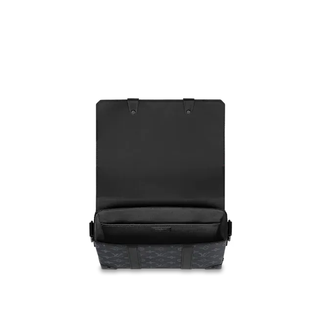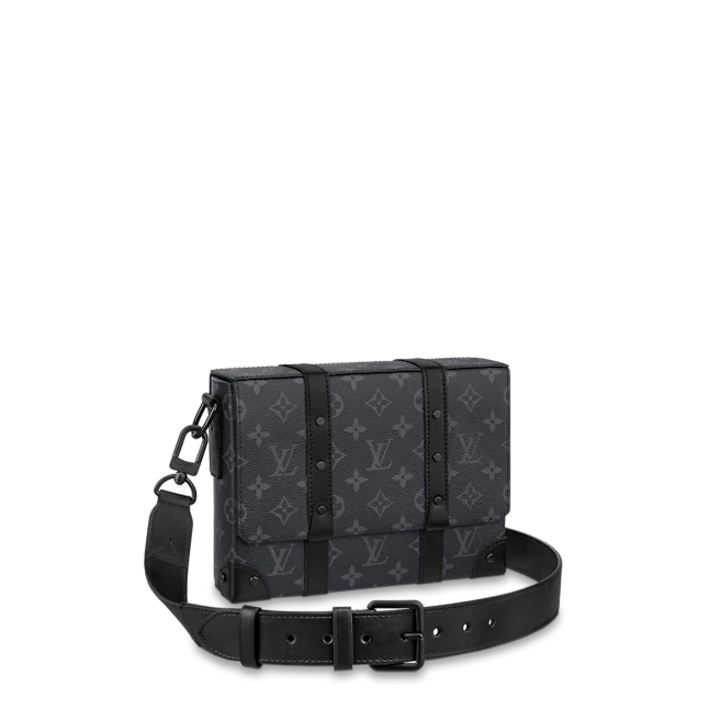 小ぶりな長方形のバッグをモノグラム・エクリプス キャンバスで仕立てた「トランク・メッセンジャー PM」。マットブラックのリベットとブラックレザーで補強を施したコーナー部分に、メゾンのアイコニックなトランクから得たインスピレーションが光ります。取外し & 調節可能なストラップを備え、外側と内側に配した複数のポケットで必需品を整理したり取出しやすいのも魅力です。