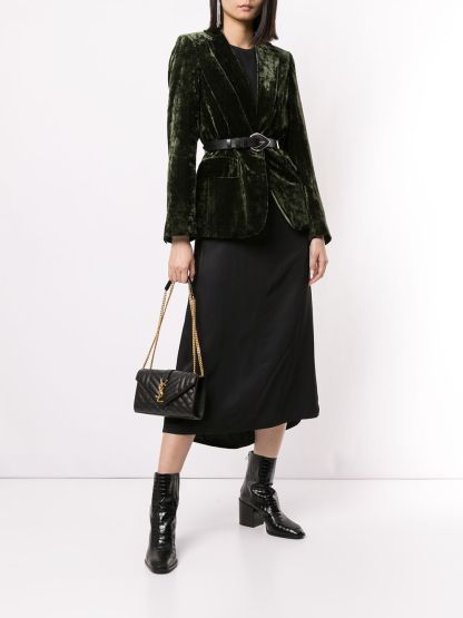 Saint Laurent(サンローラン)の、エンベロープ ショルダーバッグ S(ブラック)。チェーン&レザーのストラップ、マグネット付きの折りたたみ式開閉口、メインコンパートメント、内側にスリップポケット、キルティングのディテール、前面にロゴプレート、ゴールドトーンの金具。