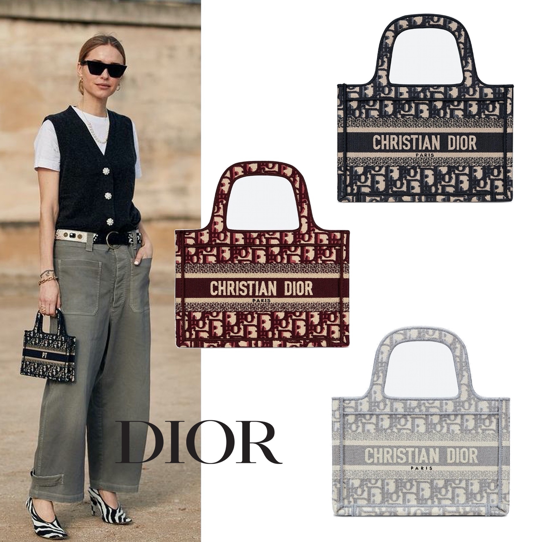 アーティスティック ディレクター マリア?グラツィア?キウリが発表したオリジナル スタイルの“ディオール ブック トート"。ディオールの美意識を語る上で今や不可欠なスタイル。日々の必需品を全て持ち歩くのに理想的なミニサイズ。グレーの「Dior Oblique (ディオール オブリーク)」の刺繍入りキャンバスを使用し、フロントには“Christian Dior”シグネチャーをあしらいました。ディオールのサヴォワールフェールを表現するキャリーオール。他のアクセサリー小物や「Mitzah (ミッツア)」スカーフと合わせてルックを完成させるのがおすすめ。