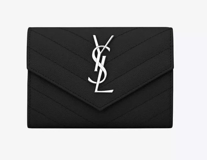 インターロッキングメタルYSLロゴとジャカードステッチのサンローランウォレット。