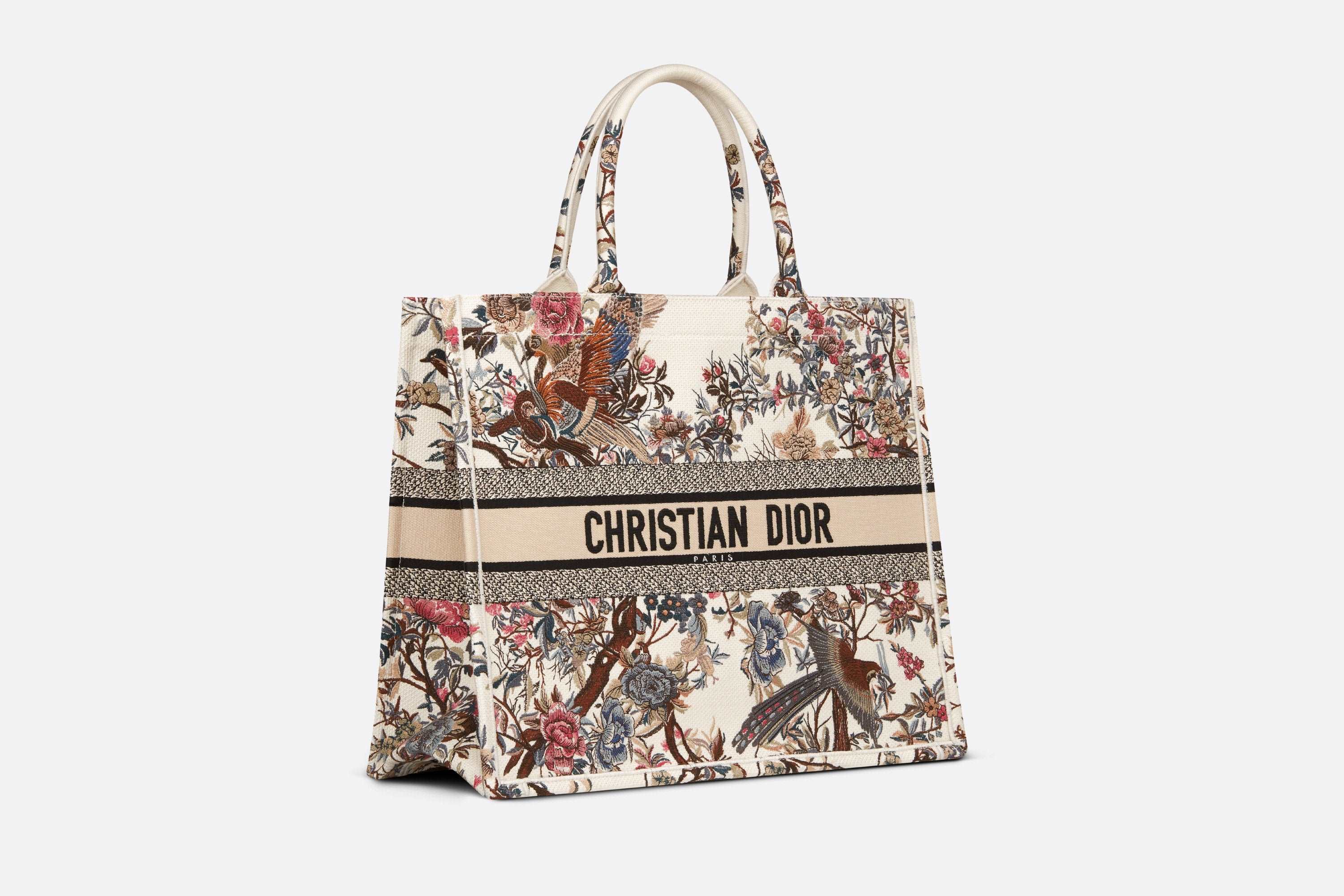 マリア・グラツィア・キウリが発表した「ディオール ブックトート」は、ディオールの美意識を語る上で今や不可欠なスタイル。毎日必要なものをすべて収納できるようデザインし、ムッシュ ディオールの邸宅の壁にあったタペストリーをポエティックかつエキゾチックな解釈で表現した、ラテ系マルチカラーの「Dior Jardin d'Hiver (ディオール ジャルダン ディヴェール)」モチーフの刺繍を全面に施したモデルです。フロントにChristian Dior Parisシグネチャーをあしらい、メゾンを象徴するサヴォワールフェールを体現したこのトートは、ハンドバッグまたはショルダーバッグとしてお使いいただけます。